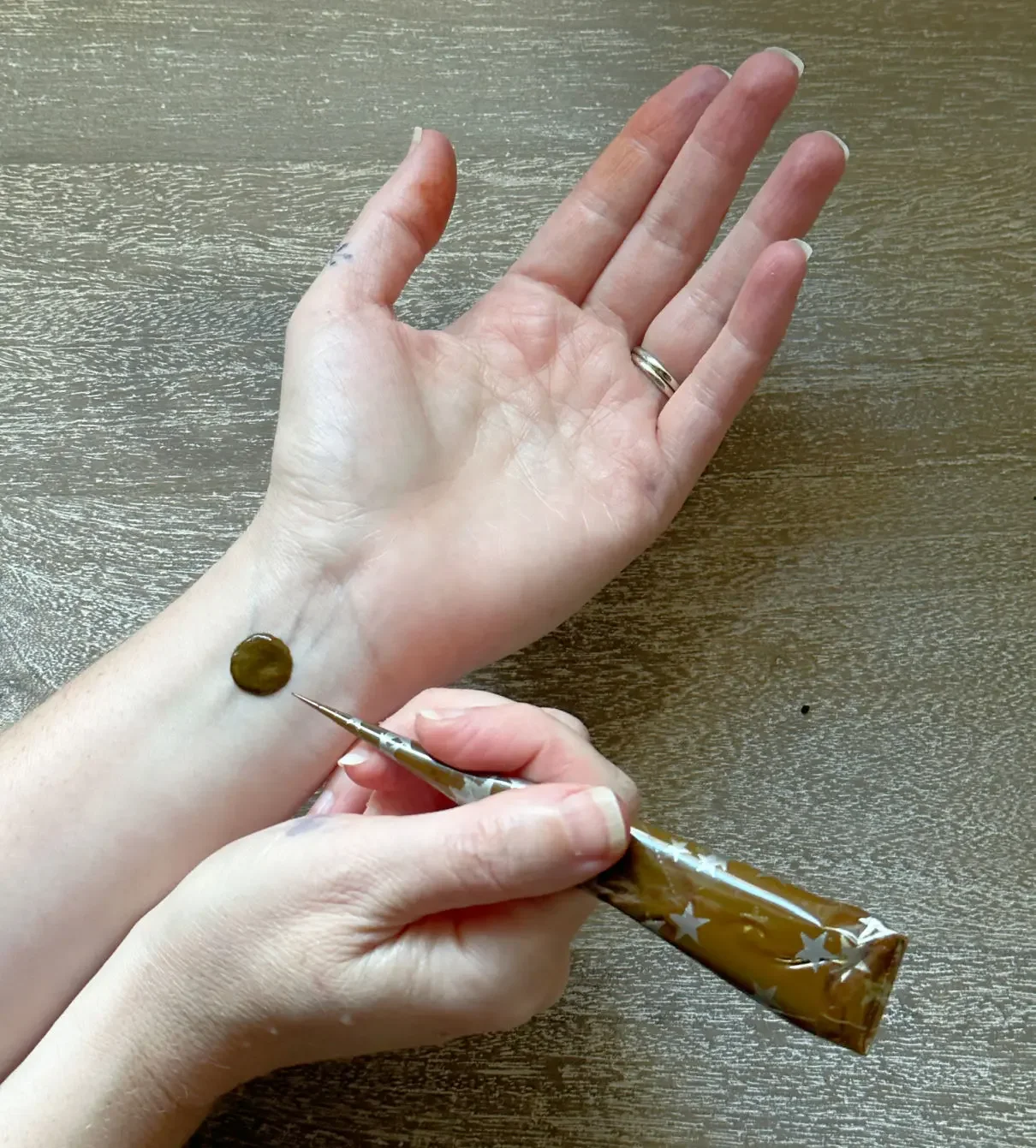 We always recommend doing a patch test before doing a full henna or jagua design. Even if you haven’t had a reaction in the past, allergies can develop over time. This is more common with jagua. A patch test helps to check whether you might be sensitive or allergic not only to henna or jagua; but also to any of the other ingredients such as essential oils.