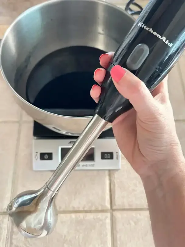 *If you don’t have an immersion blender, keep mixing with the spatula instead. It may take quite a bit longer in step 5 for the gel to come together. Just be patient and keep going!