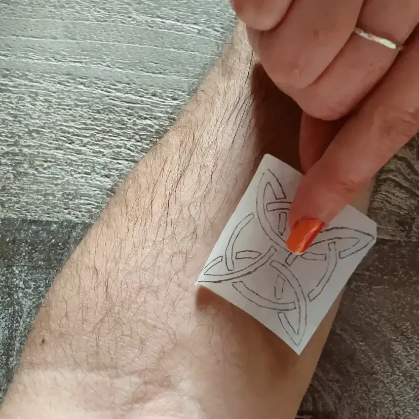 Now you’ve got the ink transferred to your skin, ready to be traced over with your henna!